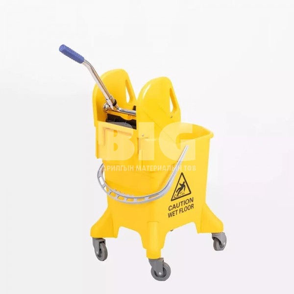 31литрийн багтаамжтай хувинтай, шал угаах цэвэрлэгээний тэргэнцэр. Өнгө: шар өнгө байхгүй, ногоон өнгө байгаа.